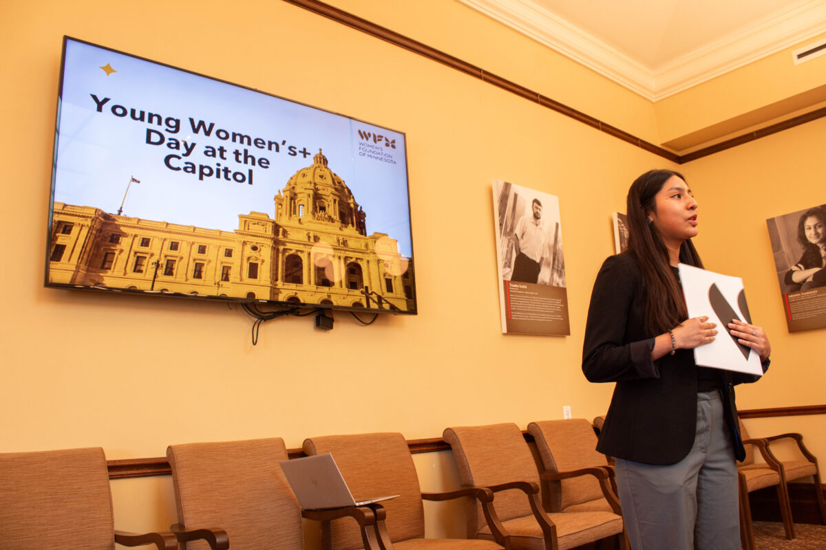 Many had the opportunity to attend the hearing on HF2607 which would expand medical insurance coverage of gender-affirming care carried by Rep. Leigh Finke. “This hearing was a tough one to witness, however participants from the Young Women’s Day at the Capitol were able to gain raw insight on how legislation is done and see the impact of advocacy efforts,” said Janett Jimenez, WFM’s Dr. Reatha Clark King Fellow. “This day allowed for likeminded individuals to make a difference together!”