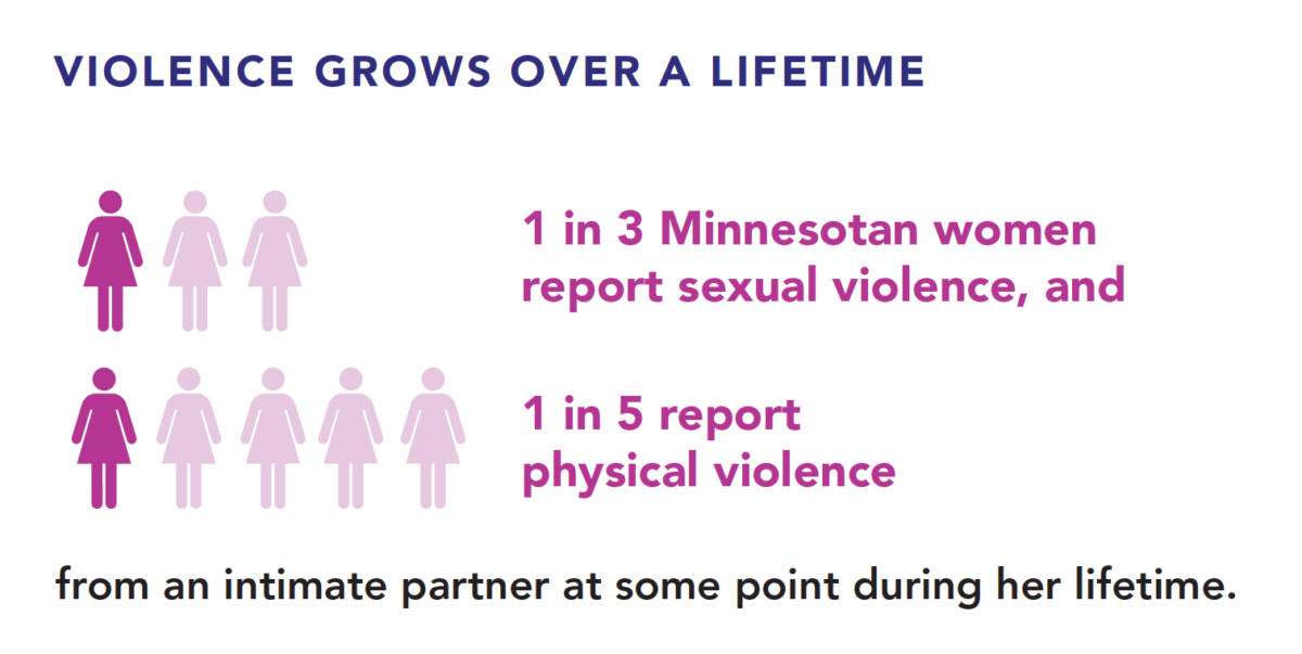 True safety depends on safety for all people. Women, girls, and gender-expansive people in Minnesota are harmed by gender-based violence throughout their lifetimes: in their homes, on the streets, and in schools, workplaces, and the criminal justice system. Consequences of witnessing or experiencing violence ripple over a lifetime and include poor health outcomes, unwanted pregnancy, substance abuse, housing, economic productivity, and personal freedom.
