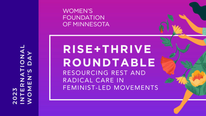 What a time to be alive and celebrating International Women’s Day! On March 8, the Rise + Thrive Roundtable was a powerful conversation on resourcing rest and radical care with Minnesota leaders in healing justice. The discussion underscored the resounding importance of changing our systems to make space for wholeness and connection as we resource rest and healing.