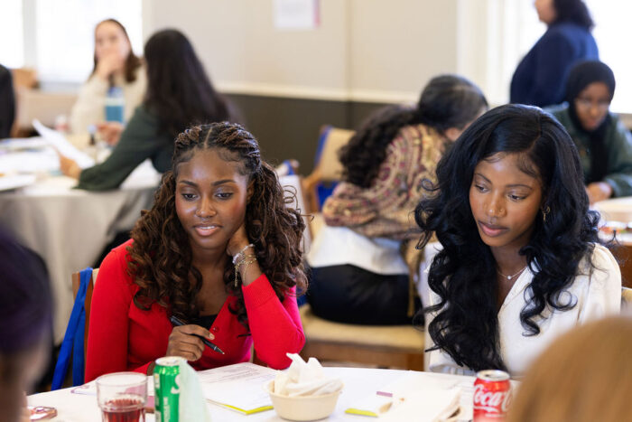 A welcoming session introduced participants to one another and to YWI and its various programs. Stations were set up around the room so they could learn about the Young Women’s Initiative, meet new people, add songs to a music playlist, make bracelets, and have fun. Thoughtful activities led by Marnita’s Table contributed to five key event goals: